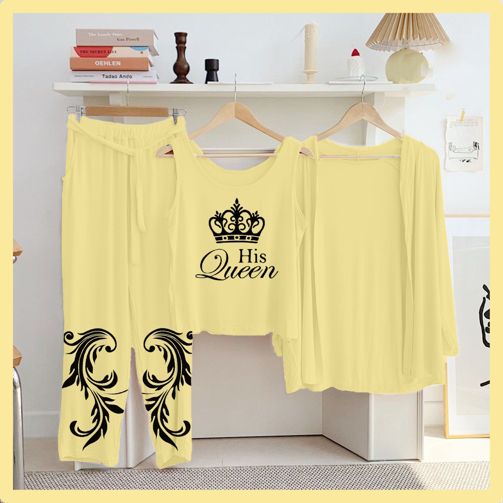 Upgrade your nightwear with our newly arrived 3-piece printed night suit in a fresh lemon color. Designed in soft jersey fabric, this set includes an inner shirt, elegant gown, and comfortable trousers — perfect for cozy nights in. Available now for Rs. 1499.