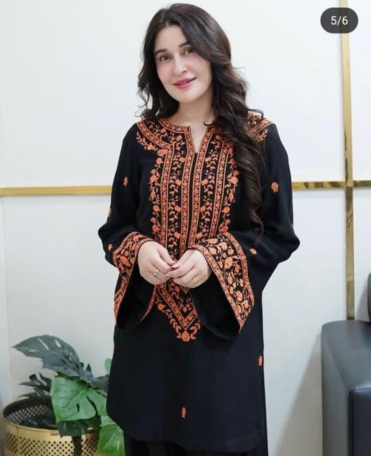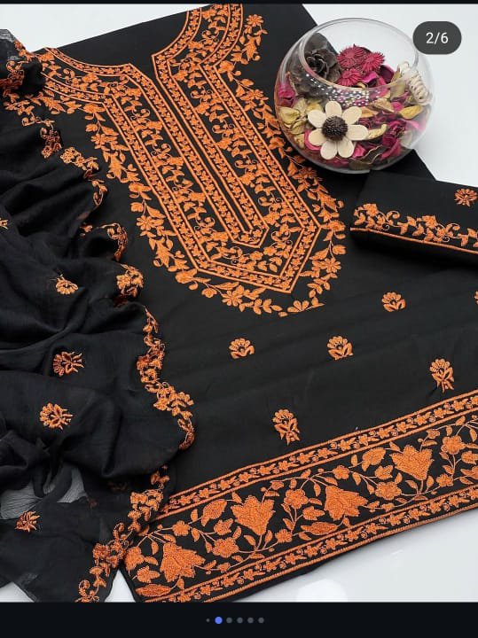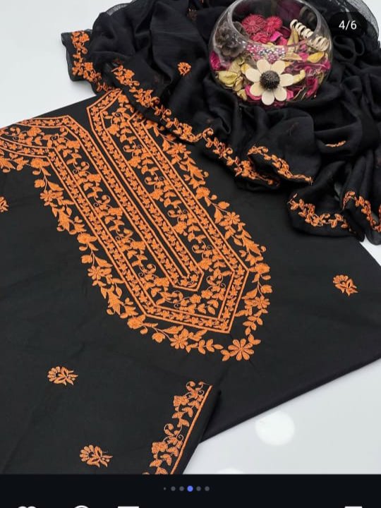 Along Beautiful krincle Shafoon computer corss Embroidered Dupta ✅